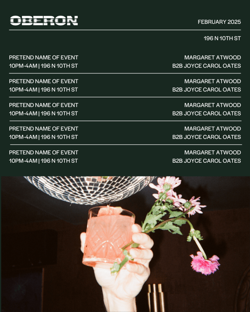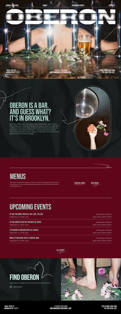 For OBERON- a new queer bar opening 2025 in Williamsburg Brooklyn- our client partners needed to find a distinct voice and personality for their space. From naming the club to defining its personality- the world was our oyster (which I, with sword, will open – that’s from the Merry Wives of Windsor, but still, Shakespeare.)