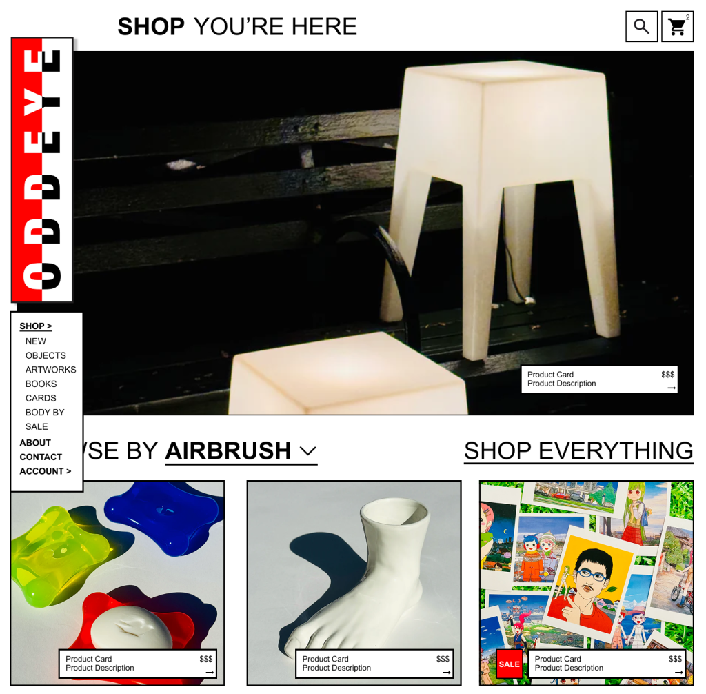 ODDEYE’s curators spend a lot of time crafting beautiful media for their platform, but the store lacked a framing device for this rich imagery. We created a new design that allowed bolder, impactful presentation of media to better evoke the physical experience of poring through their wares.